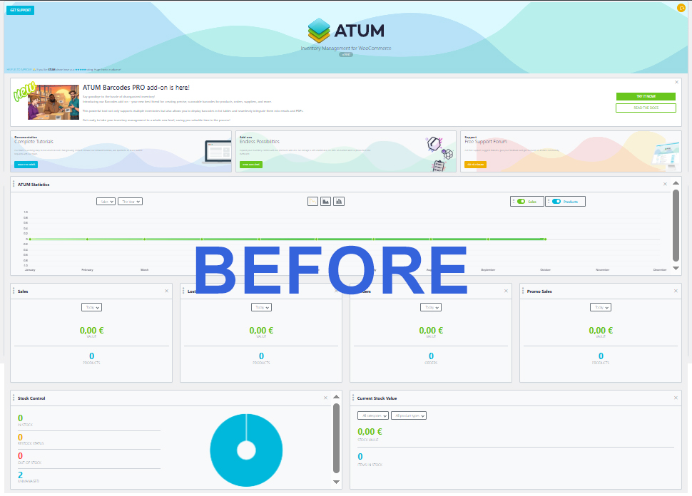 ATUM® Clean Dashboard is a lightweight plugin that removes visual clutter from the ATUM® Inventory Management dashboard. It does this safely, without modifying ATUM® or disabling any of its features. Instead, it delivers a cleaner workspace through simple CSS.